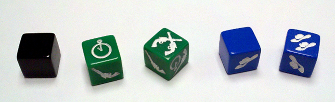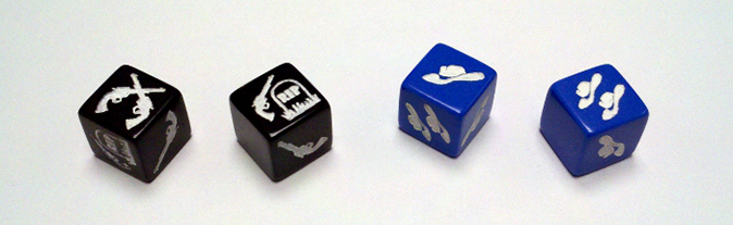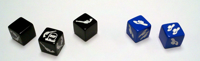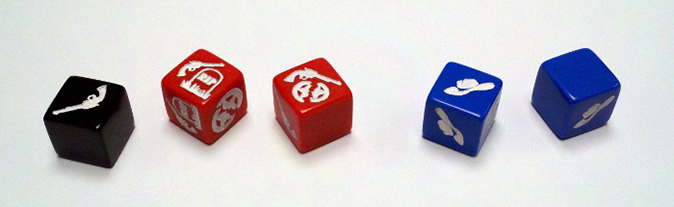 Here are a couple of Standard Attack Dice and Defense Dice.
